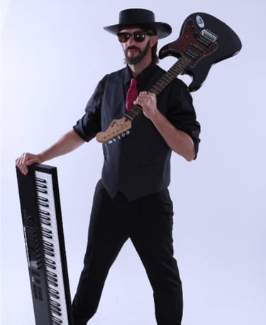 Eric has been making music since he was in middle school, starting out with the French horn as his first instrument. Drawing inspiration from Depeche Mode and Frank Zappa, Eric is a self-taught guitarist, bassist, and keyboardist. He gained experience performing with Diablo Valley College's Rock, Rhythm and Blues performance program, guided by Steve Sage. Since then, he has played in various rock bands across Washington, Oregon, California, Nevada, and Arizona.