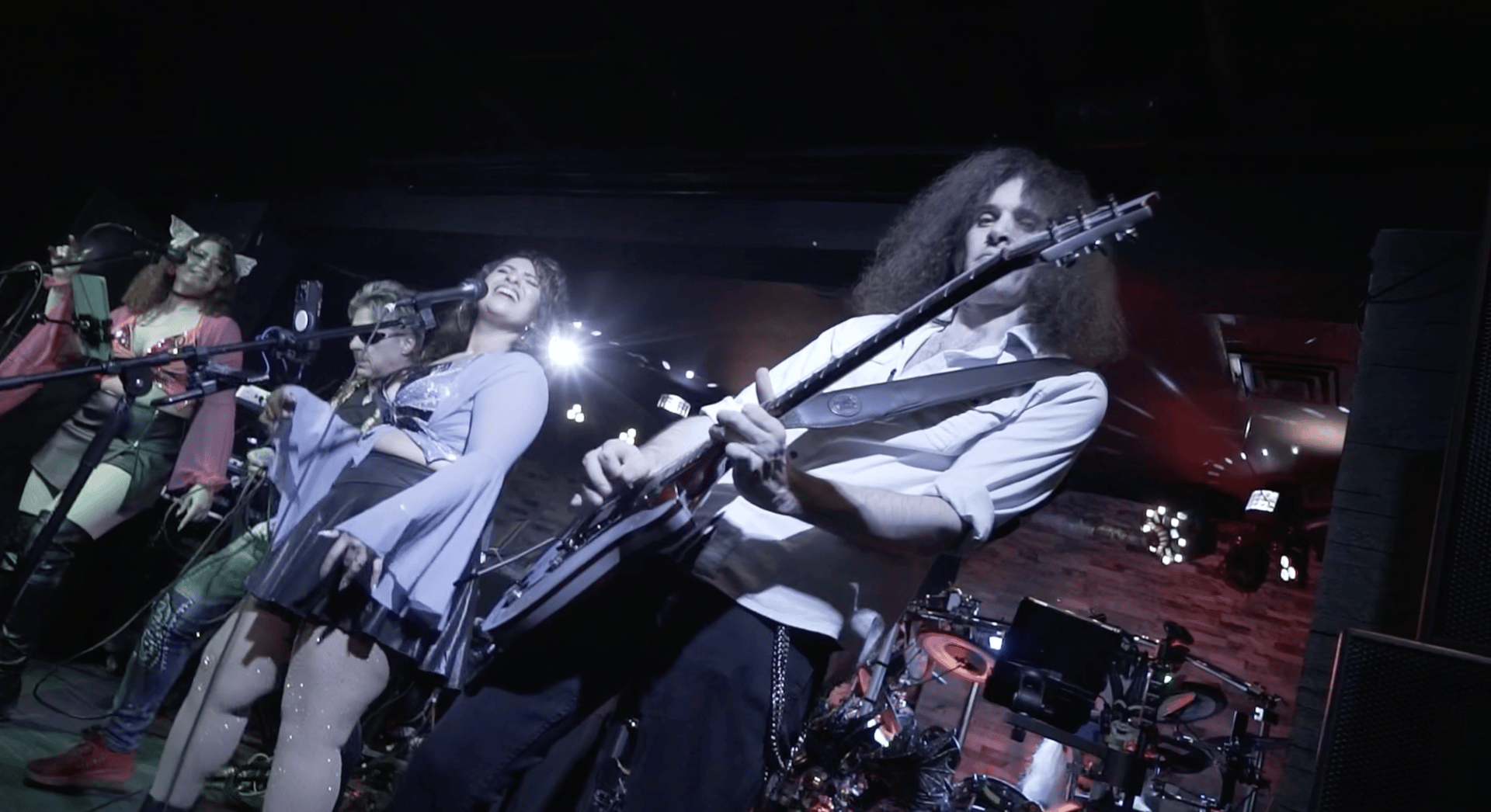 an abstract photo of a curved building with a blue sky in the background